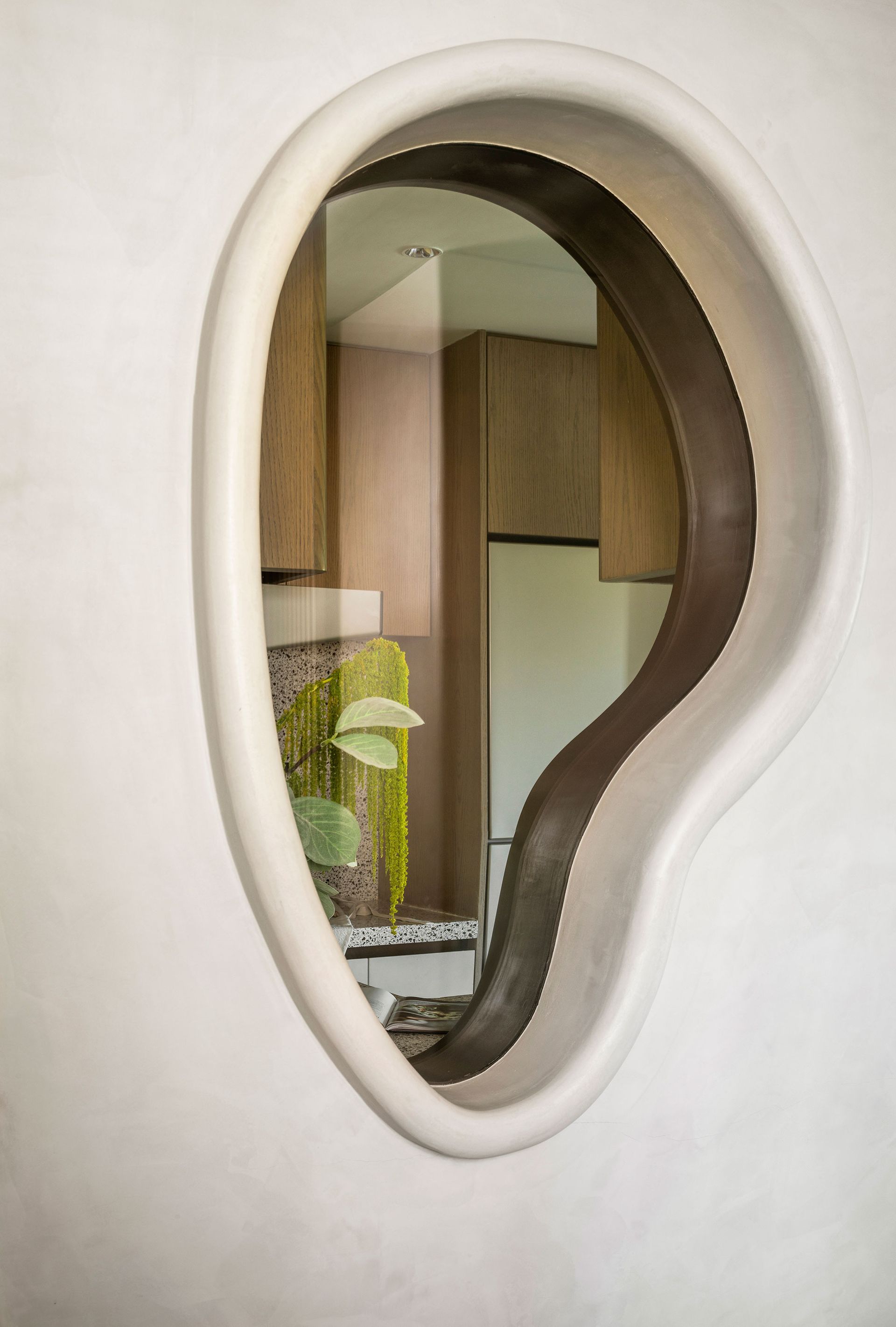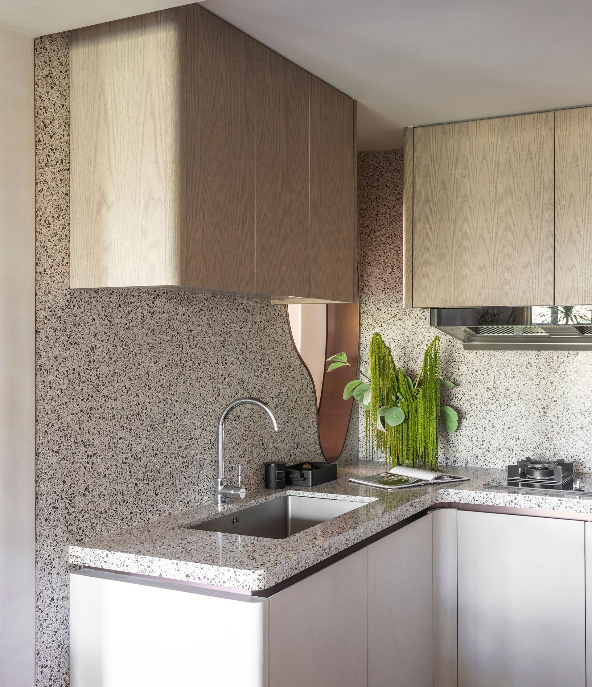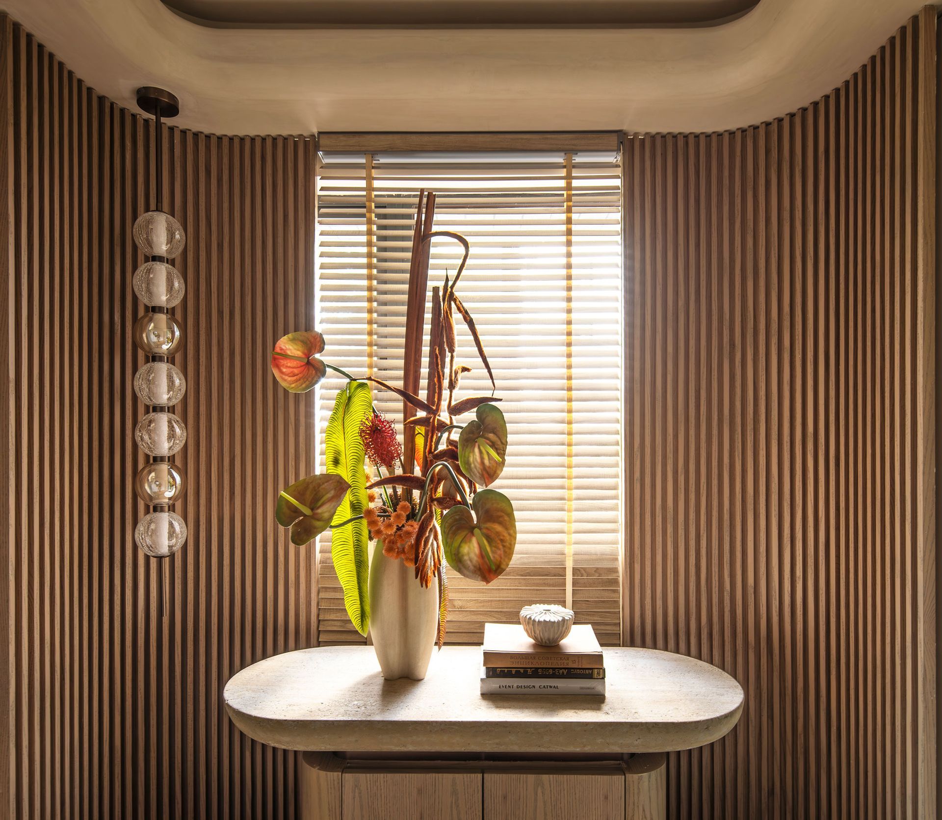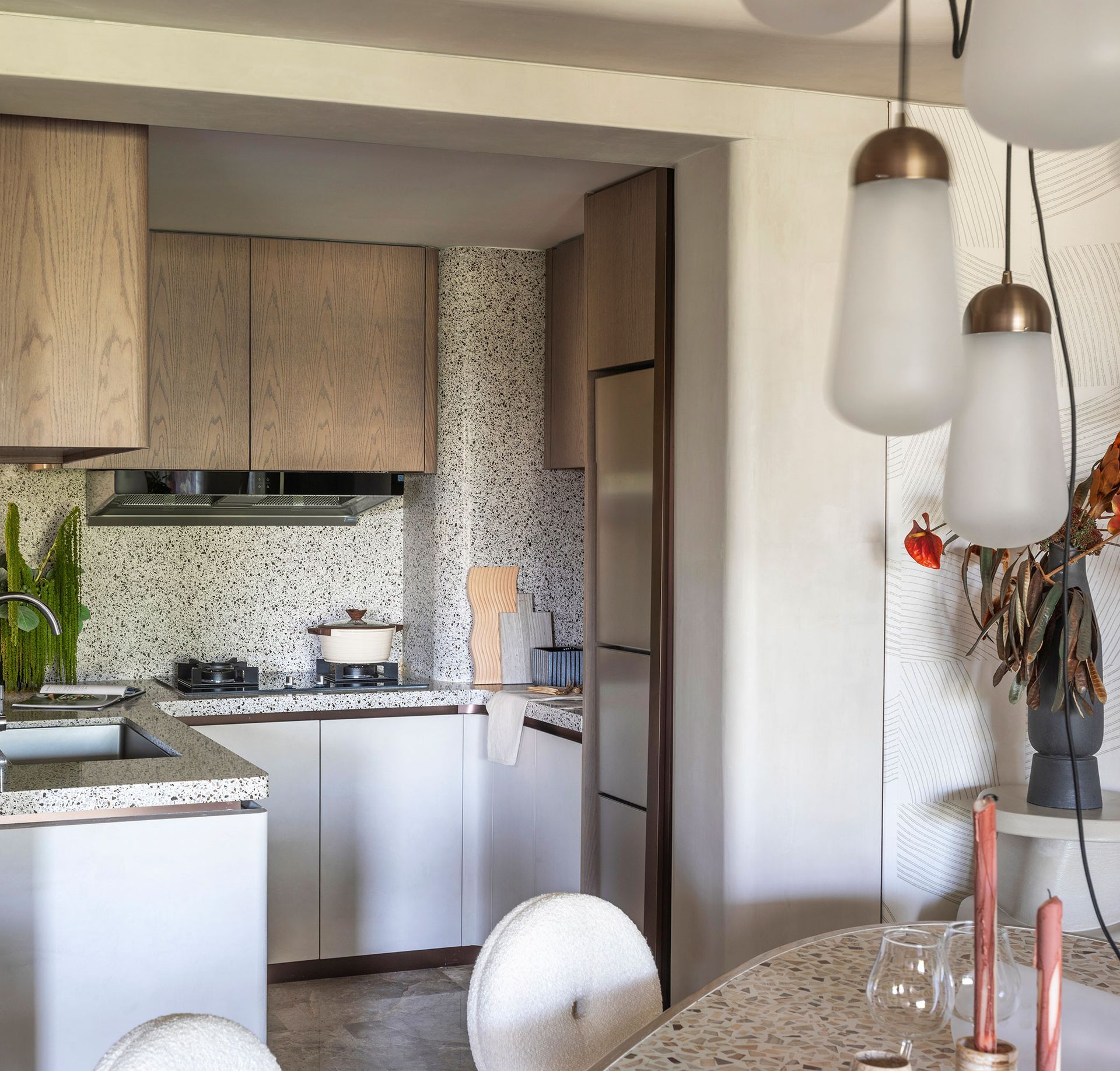 This minimalist show flat in Hainan takes its cues from a wild coastal landscape. It draws inspiration from sweeping waves and undulating forms which lie in the depths of the ocean floor. The design is based on a creative artist couple who have built their dream home. They have two young children Jack and Hannah. Their family home is a reflection of their values and poetic outlook on life. They have cultivated a serene abode that goes beyond the mundane and merges art with life.