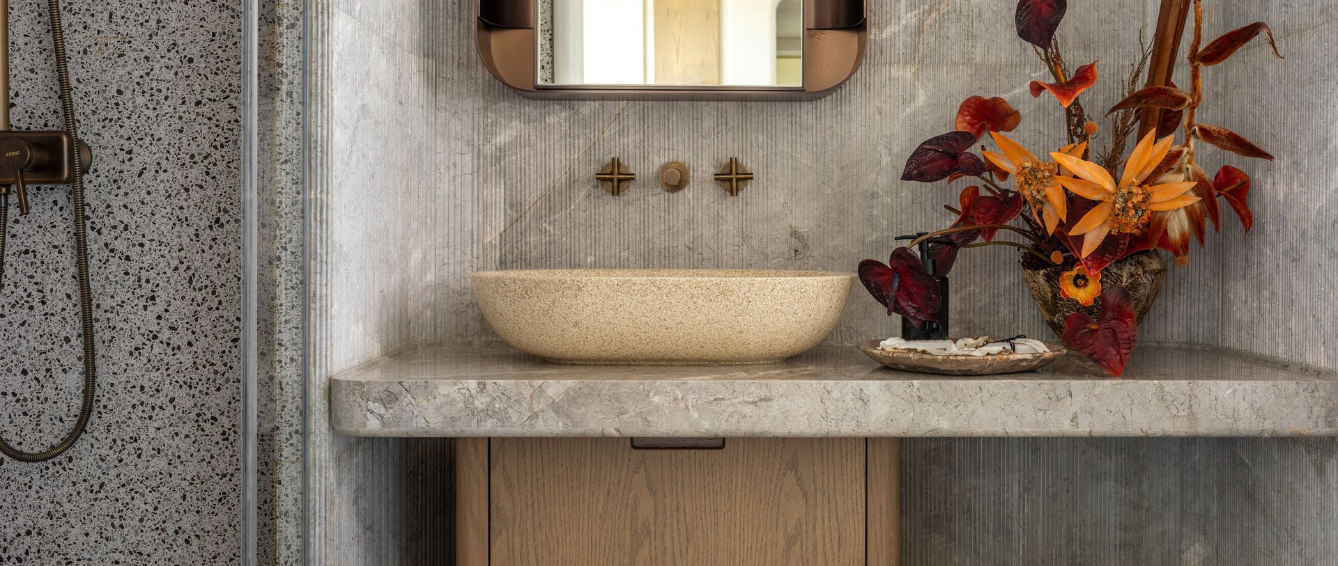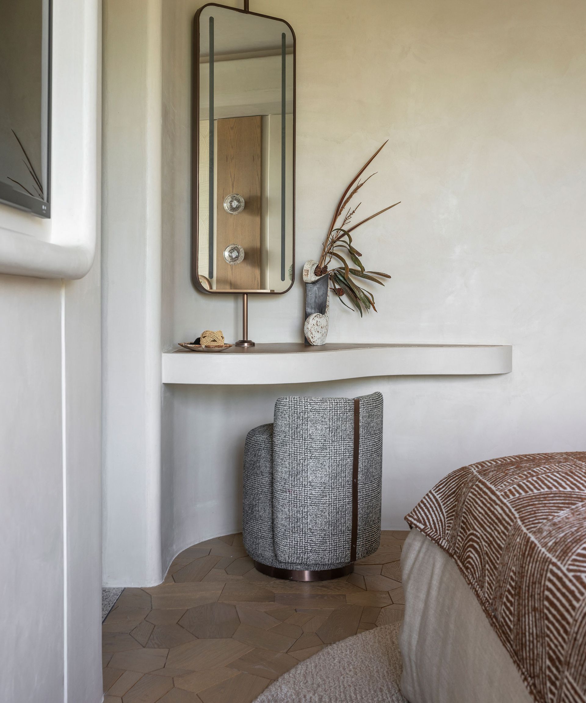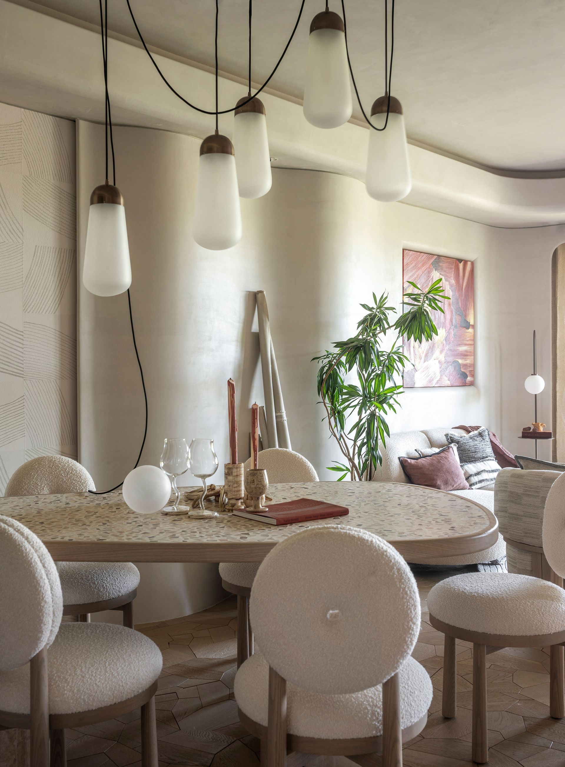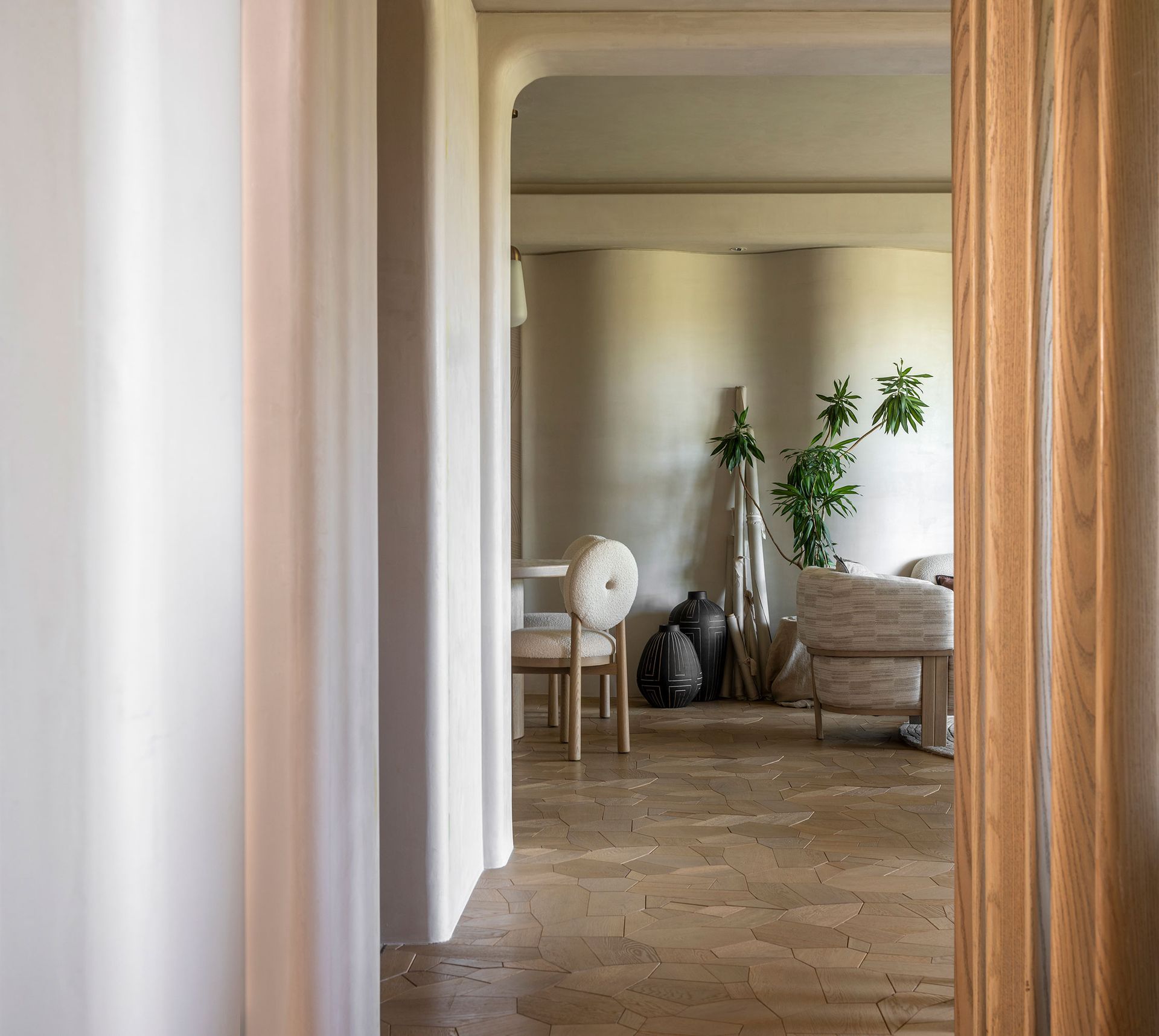 This minimalist show flat in Hainan takes its cues from a wild coastal landscape. It draws inspiration from sweeping waves and undulating forms which lie in the depths of the ocean floor. The design is based on a creative artist couple who have built their dream home. They have two young children Jack and Hannah. Their family home is a reflection of their values and poetic outlook on life. They have cultivated a serene abode that goes beyond the mundane and merges art with life.